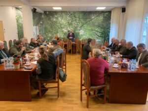 Wspólne spotkanie członków Ruchu Obrony Lasów Polskich, Zarządu Okręgowego Stowarzyszenia Inżynierów i Techników Leśnictwa i Drzewnictwa oraz Klubu Dyskusyjnego w Centrum Edukacji Leśnej Nadleśnictwa Celestynów.
